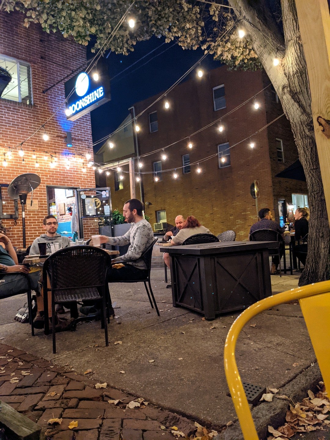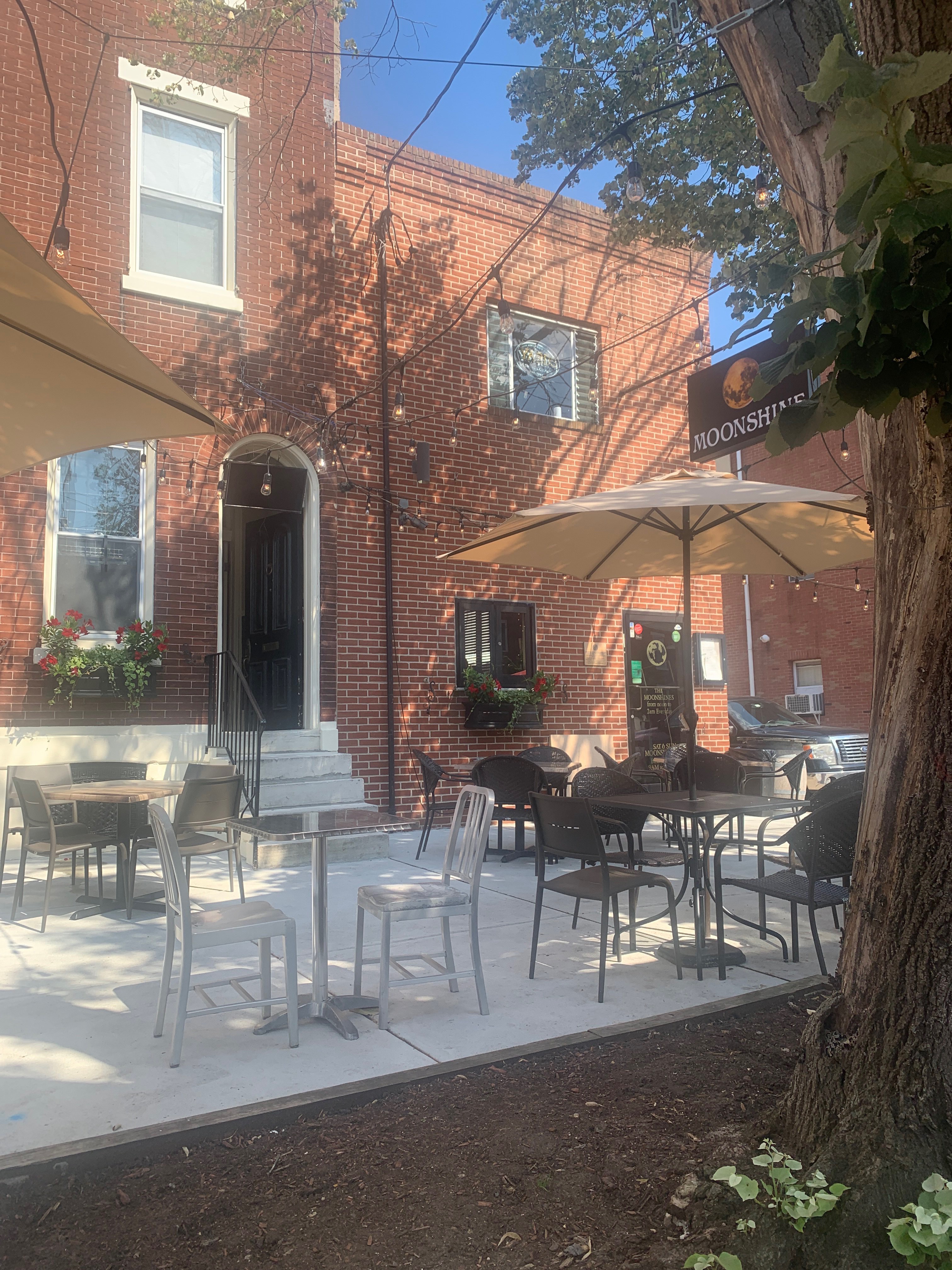 Moonshine offers amenities such as Takeout, Delivery, Good for Kids, Outdoor Dining, Outdoor Parking, Street Parking, Accepts Contactless Payments, Takeout, Delivery, Good for Kids, ensuring a comfortable and convenient experience for clients.